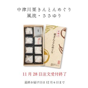 「中津川栗きんとんめぐり 風流・ささゆり」は12月6日(土)が最終お届け日となっております。